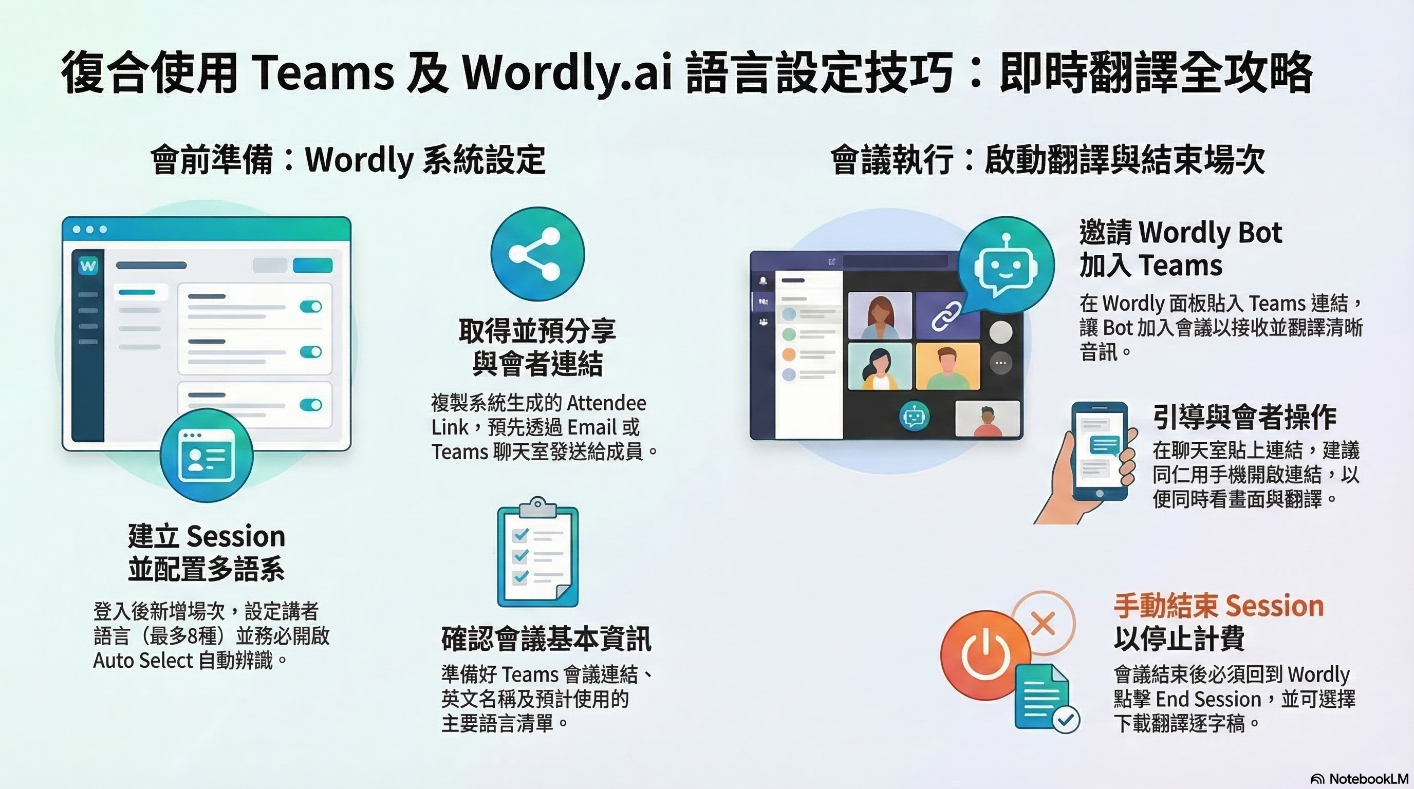 本文旨在引導會議主持人與管理員,如何在 Microsoft Teams 會議中設置並啟用 Wordly 即時翻譯服務: